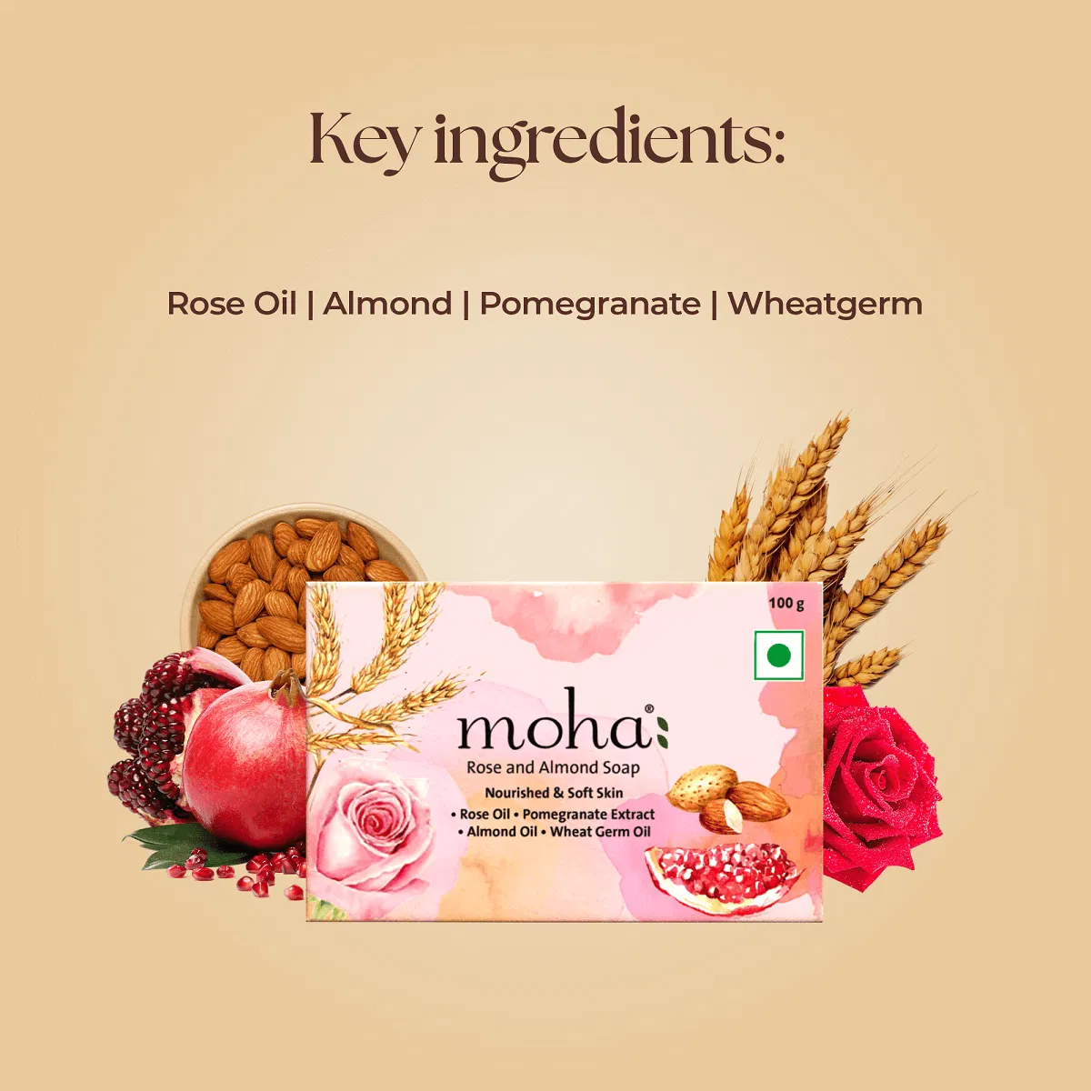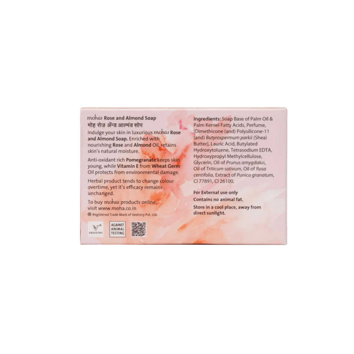 - moha: Мыло «Роза и миндаль» относится к классу 1 с содержанием TFM 76%, что делает его увлажняющим куском для ванны для всей семьи и помогает бороться со старением кожи, ее тусклостью и сухостью.